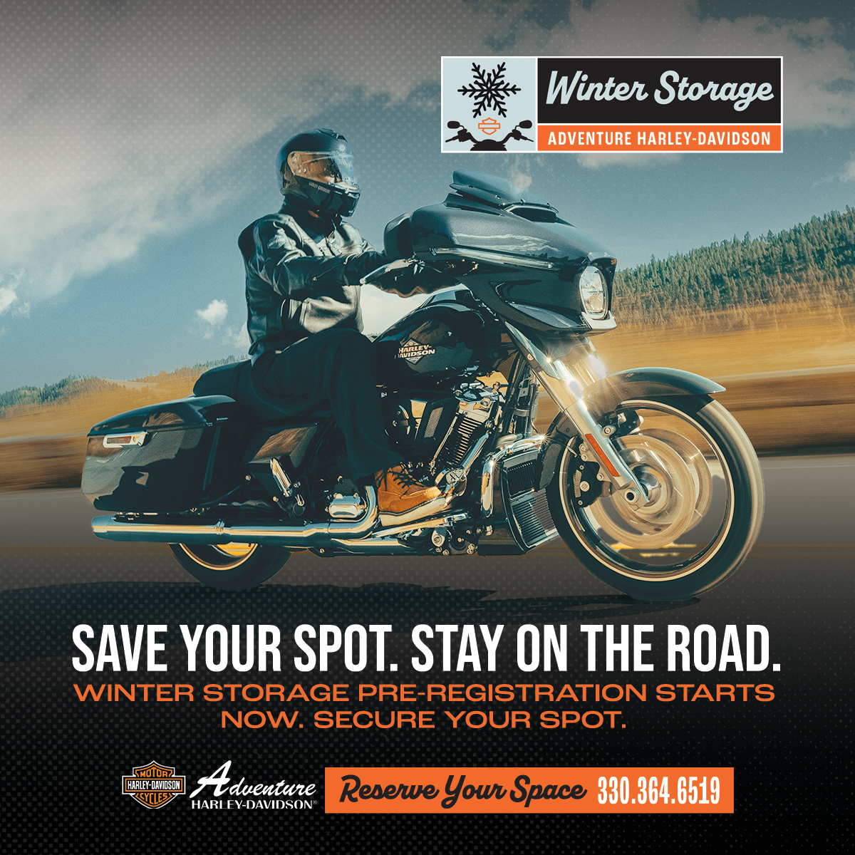 We know you're still riding. Lock in your Winter Storage spot now and drop off whenever you’re ready. Two & three-wheel options available. Spots reserved for VIPS!